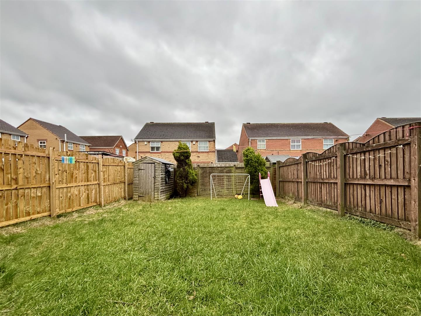 To the front of the property is an open plan driveway with parking for two cars and a small lawn area. To the rear is an enclosed garden, mainly laid to lawn with a garden shed and outside tap.