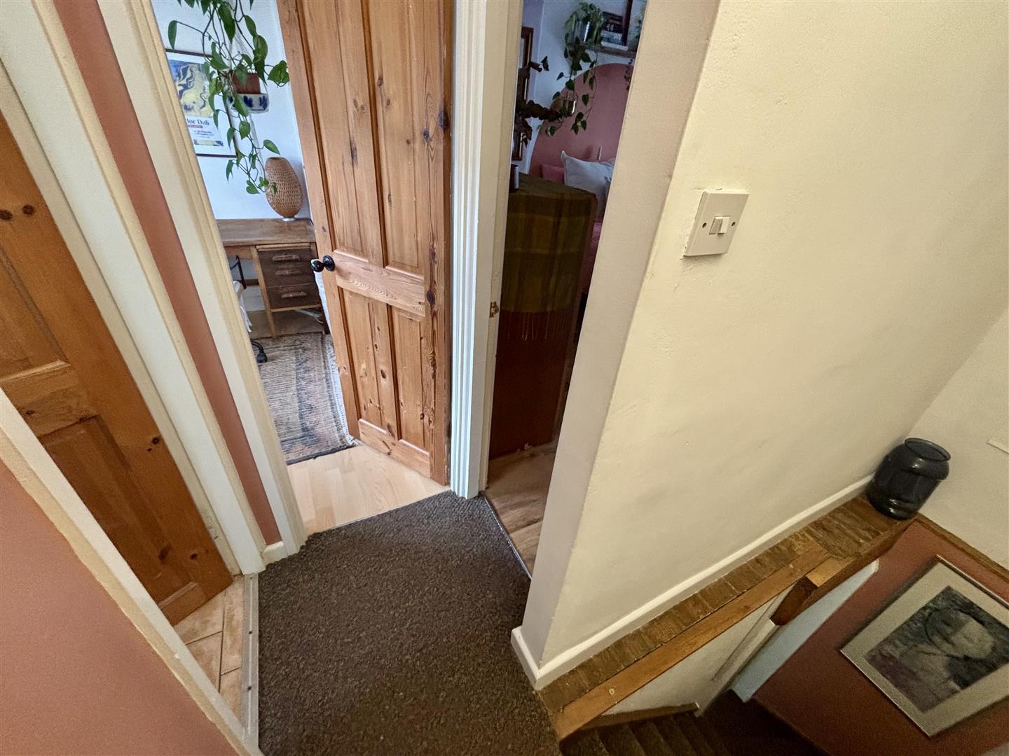 Landing area with a central heating radiator and doors off to the bedrooms & bathroom.