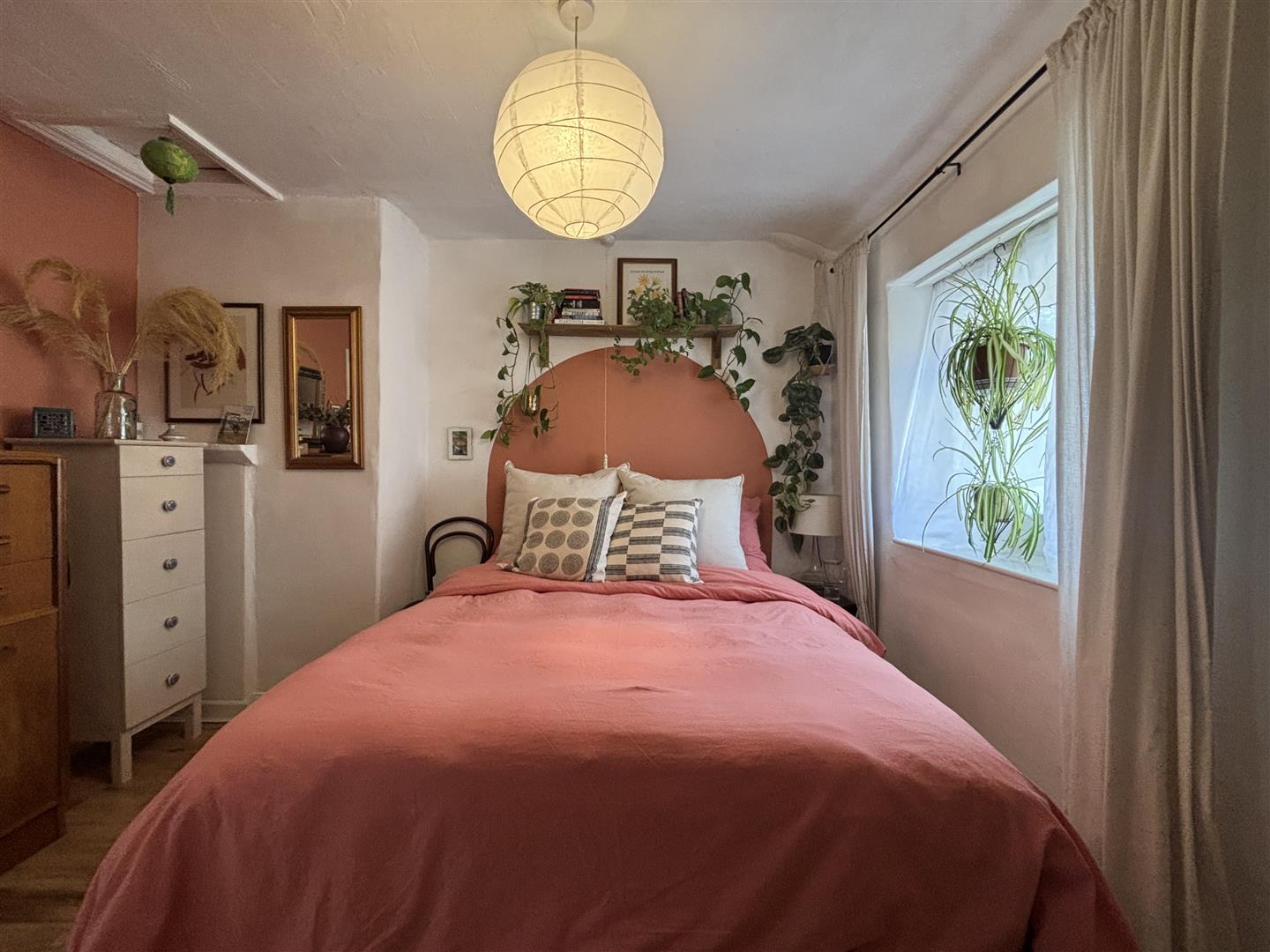 Fitted cupboards and clothes hanging space, central heating radiator and a window to the rear elevation.