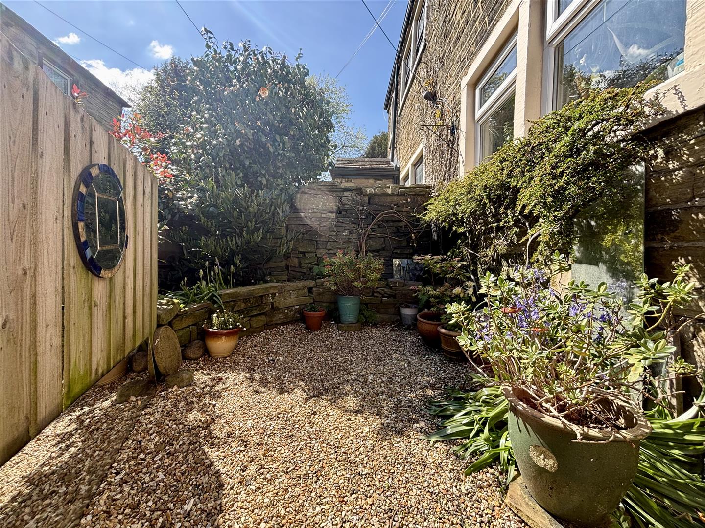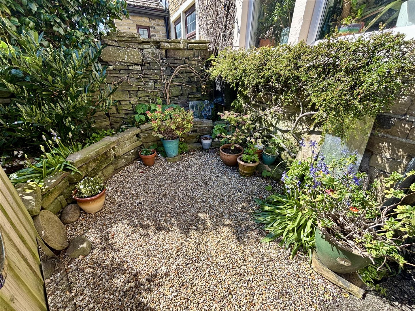 To the front of the property is a bin-store area plus a cottage style garden with gravel, a raised flowerbed, mature shrubs and planting. Ideal for sitting out in the summer months.