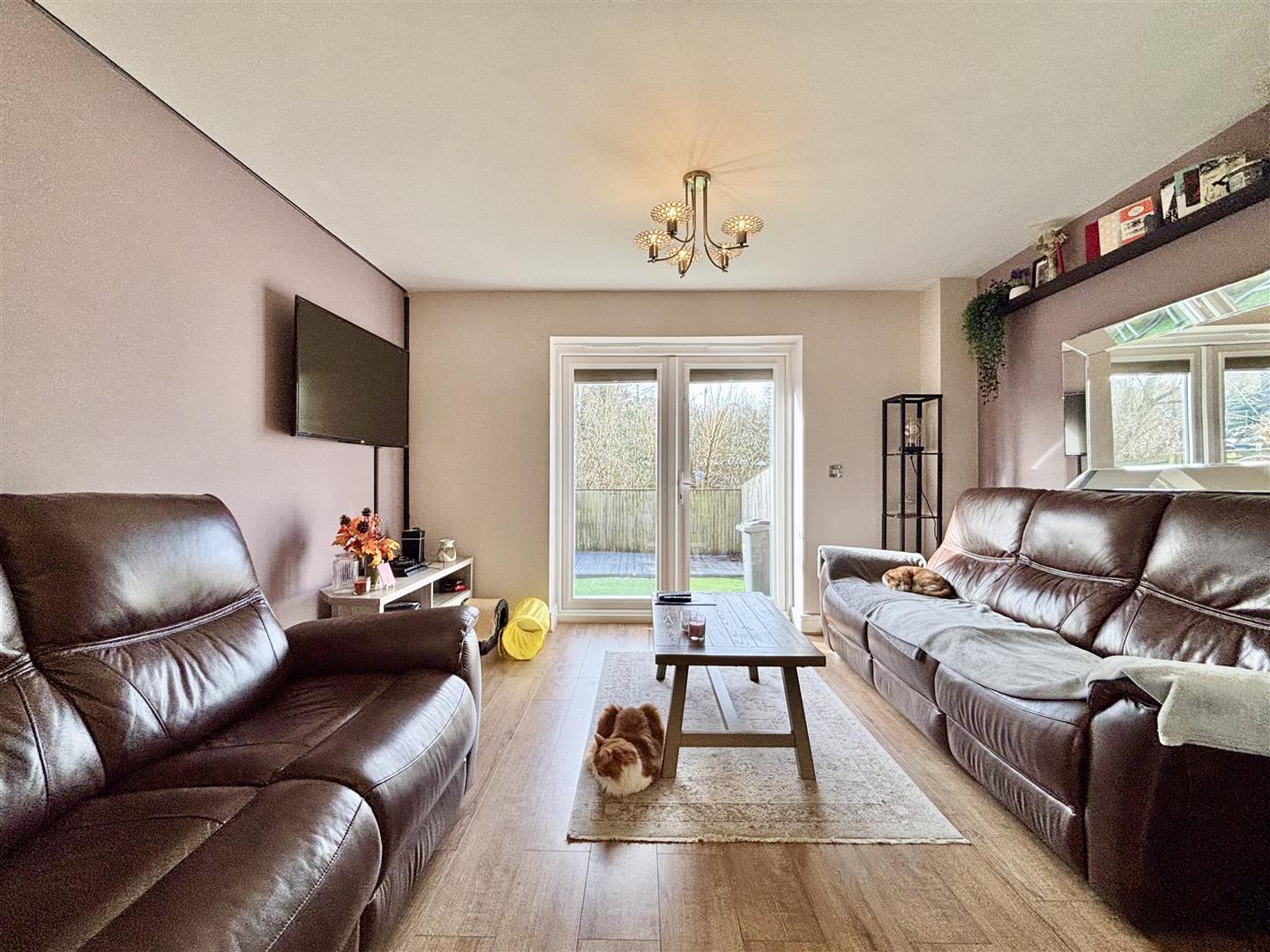 French doors leading out to the rear garden, laminate flooring and two central heating radiators.