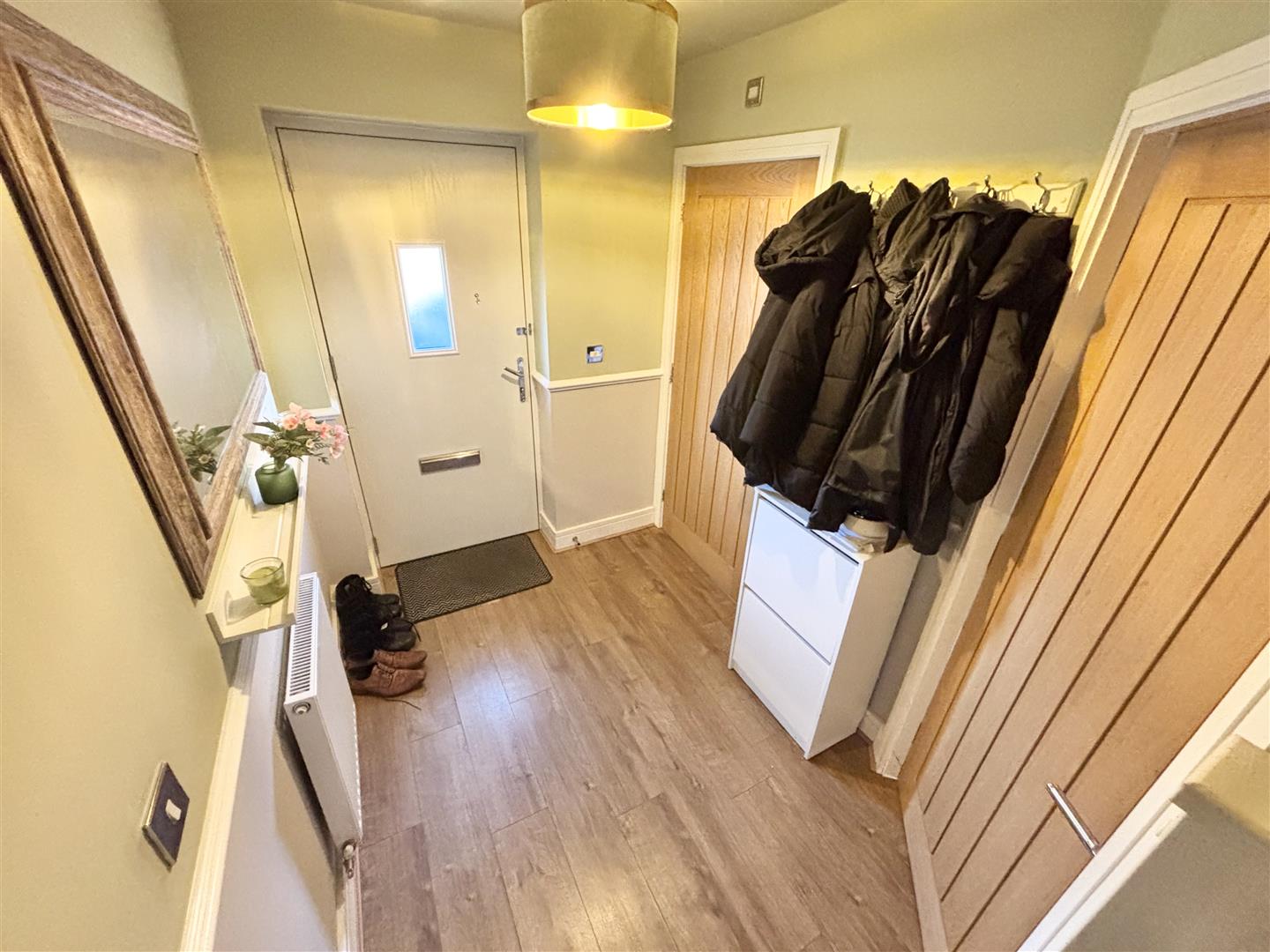 The front door leads into a good sized hallway with stairs off to the first floor and doors to the kitchen and WC. Central heating radiator, feature wall panelling and laminate flooring.