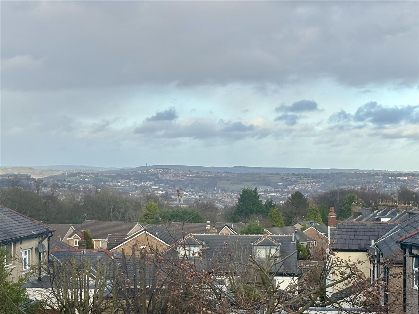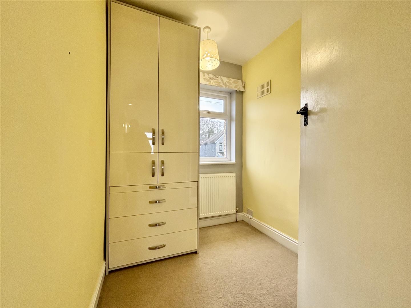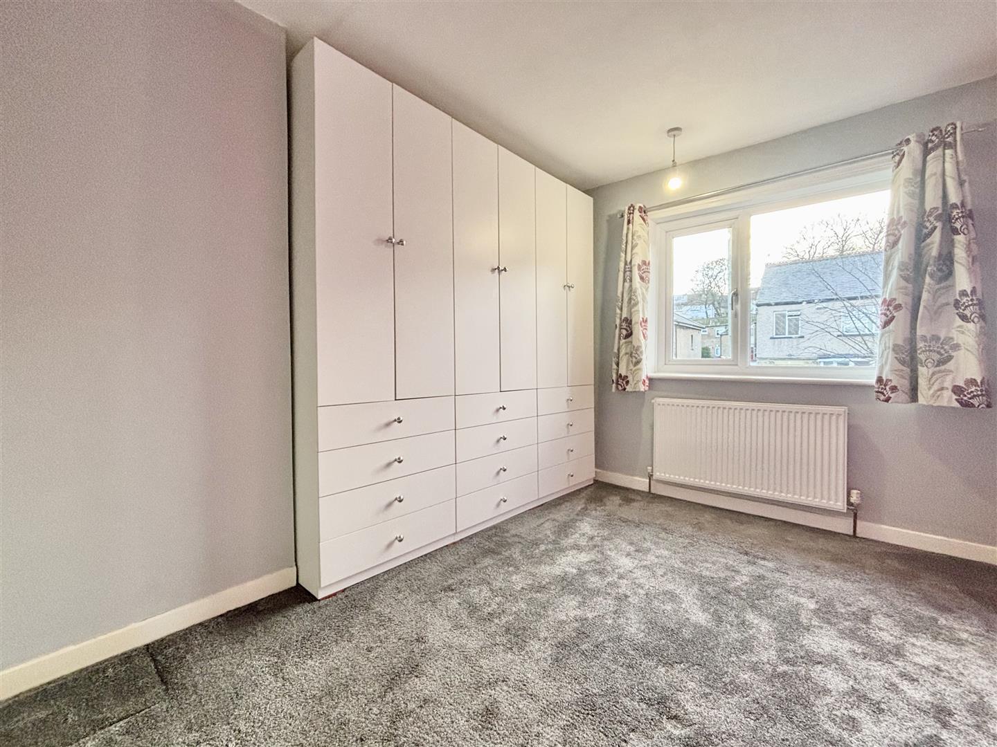 Window to the rear elevation and a central heating radiator. Enjoying distant uninterrupted views across Bradford. A large double wardrobe with sliding doors is included in the sale.