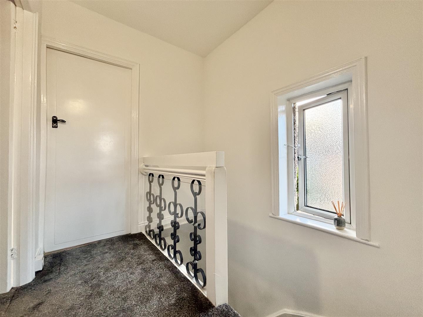 Landing area with a window to the side elevation and access to the bedrooms and bathroom.