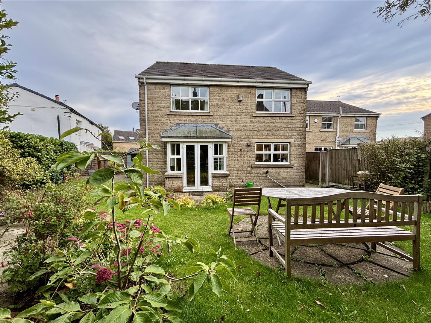 Enclosed child or pet friendly garden to the rear consisting of lawned areas, paved patio, flower beds, plus a range of mature shrubs and trees. To one side is a further patio area with a garden shed. Lockable gates can be found at both sides of the property leading to the rear. To the front is an open plan two car driveway and boundary hedging.