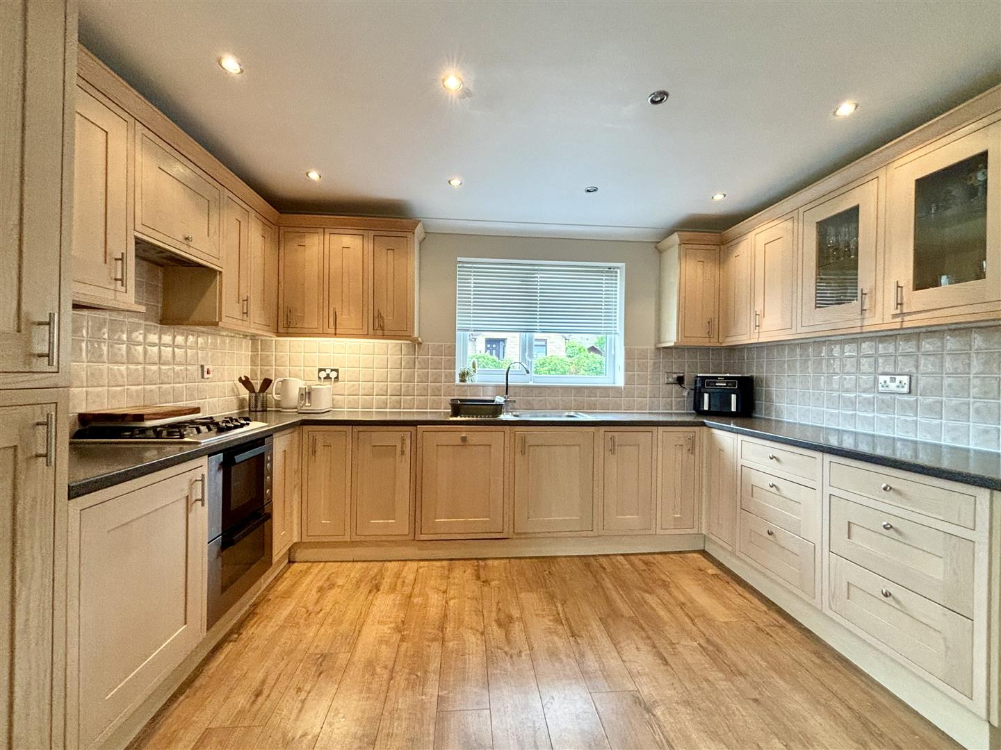 A great sized family kitchen with ample space for a large dining table and a fully fitted kitchen area including, an integrated fridge-freezer, dishwasher, double electric oven, gas hob and extractor. There are windows to both the front and side elevations and a central heating radiator.