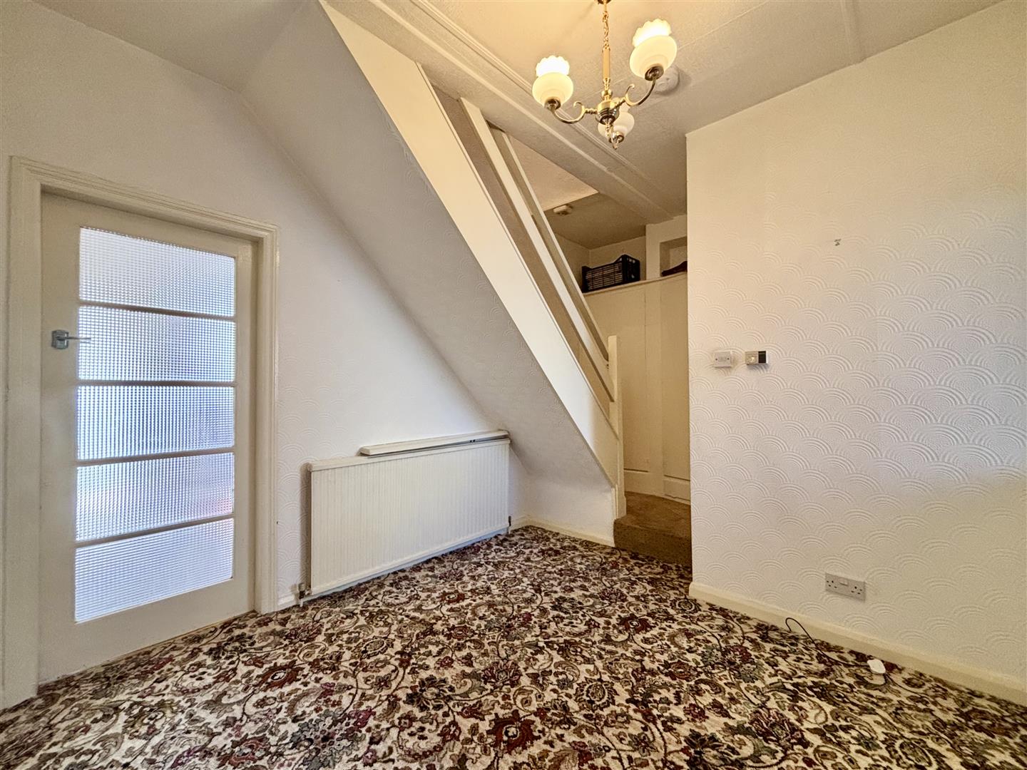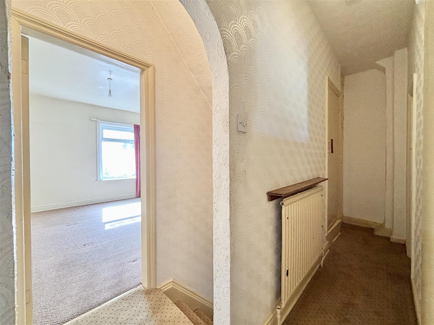 Stairs lead off to the first floor, central heating radiator, fitted cupboards, hatch with stairs down to the cellar and a door to the lounge.