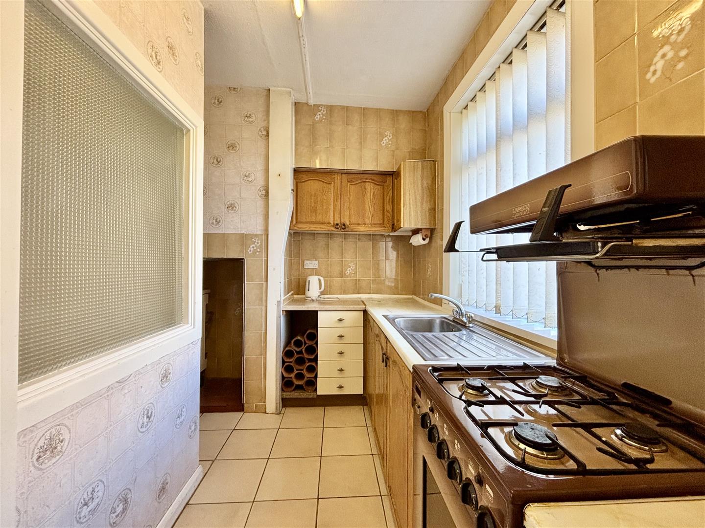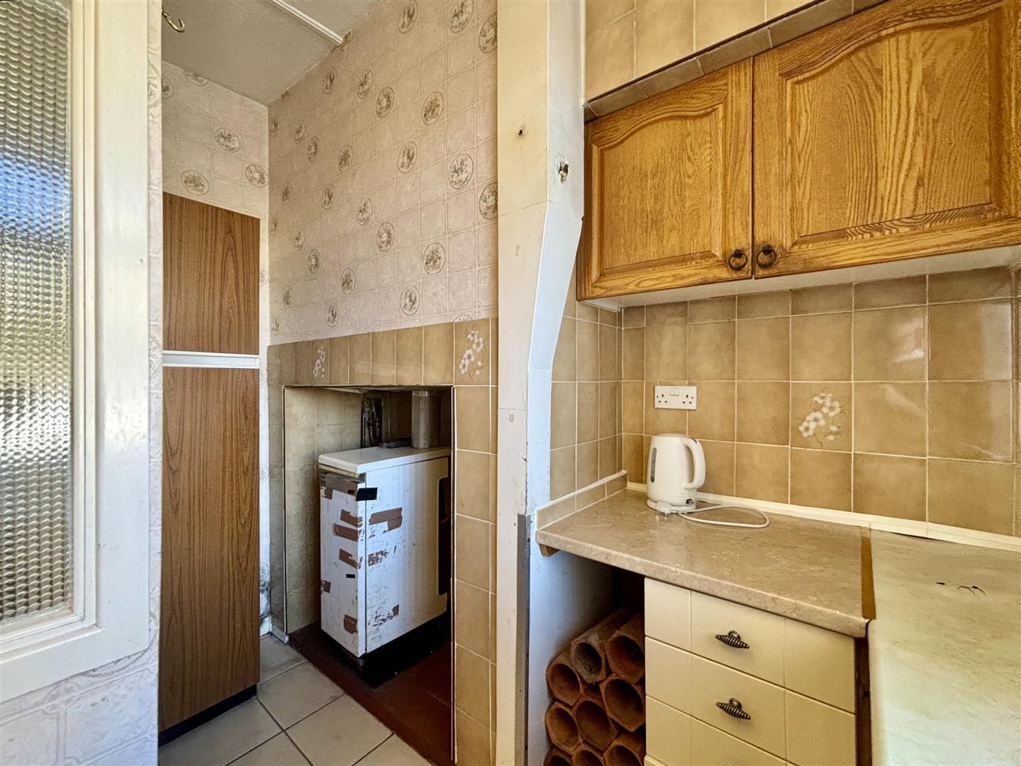 Fitted with a range of base and wall units, laminate work surfaces over and tiled splash-backs. Free-standing gas cooker, stainless steel sink & drainer, plumbing for a washing machine and the central heating boiler. Window to the front elevation. There is a glass partition separating the kitchen from the dining room that could be removed to create a large modern dining-kitchen.