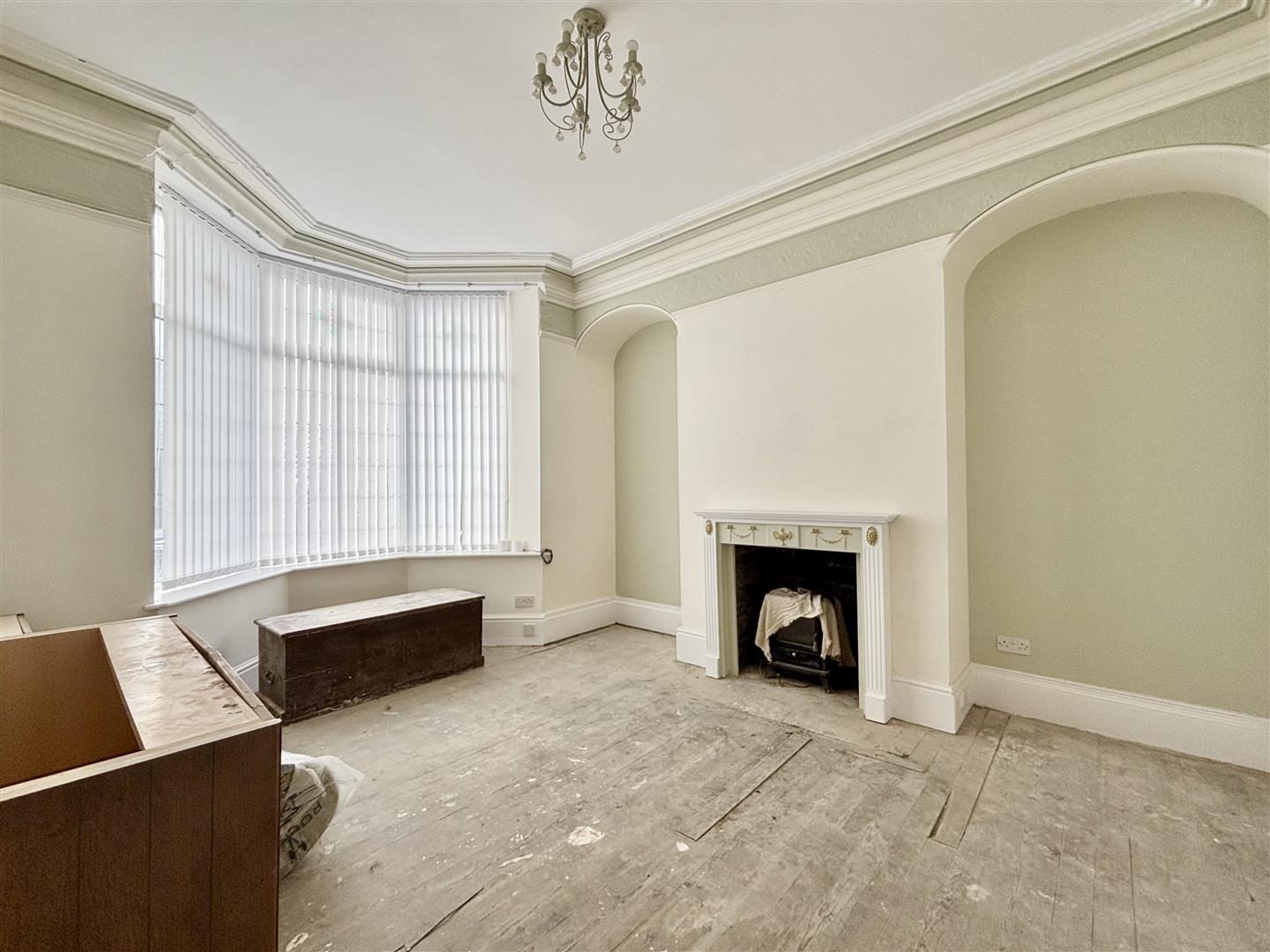 Bay window to the front elevation and character features such as the original cornice, ceiling rose and arched fireplace alcoves. Period style fireplace and a central heating radiator.