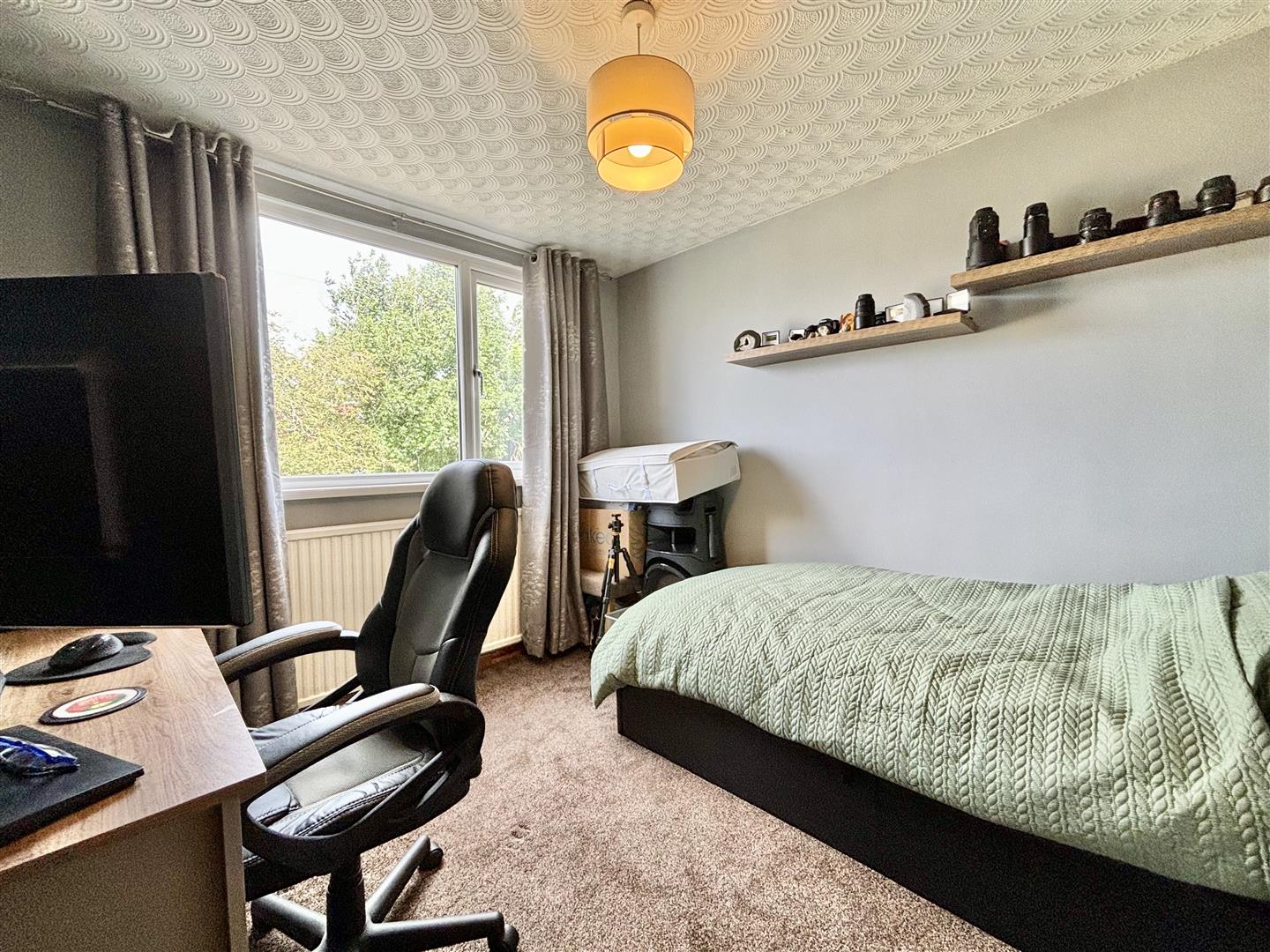 Fitted with a range of bedroom furniture including three double wardrobes, single wardrobe and drawers. Window to the rear elevation and a central heating radiator.