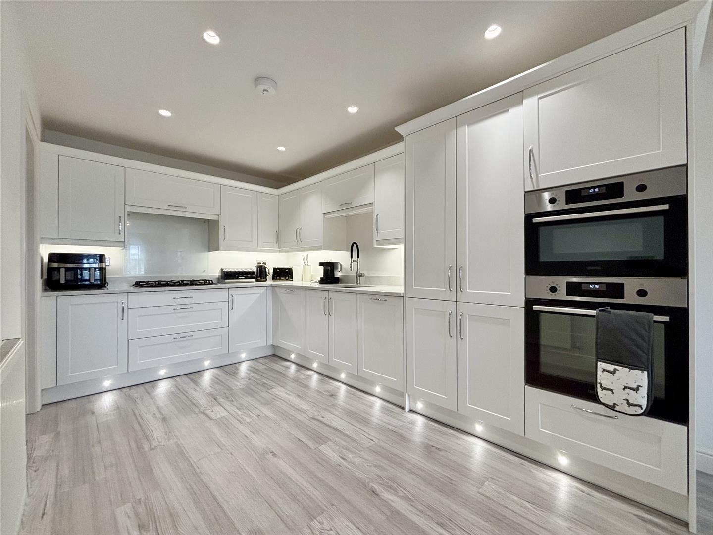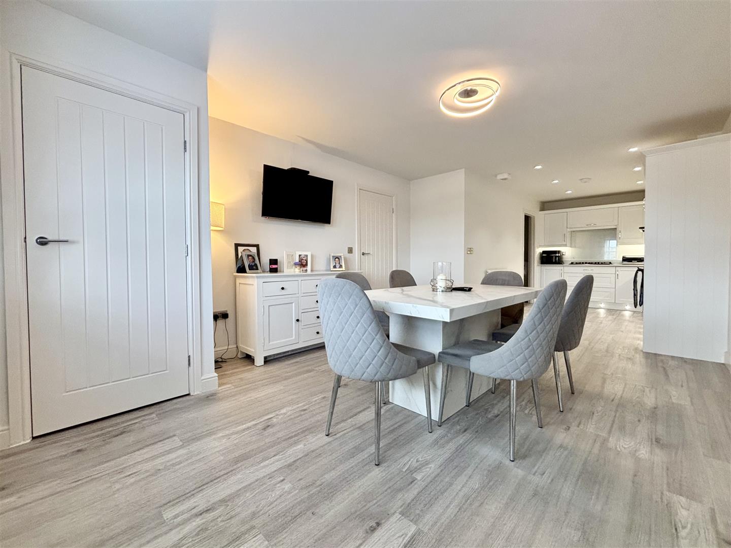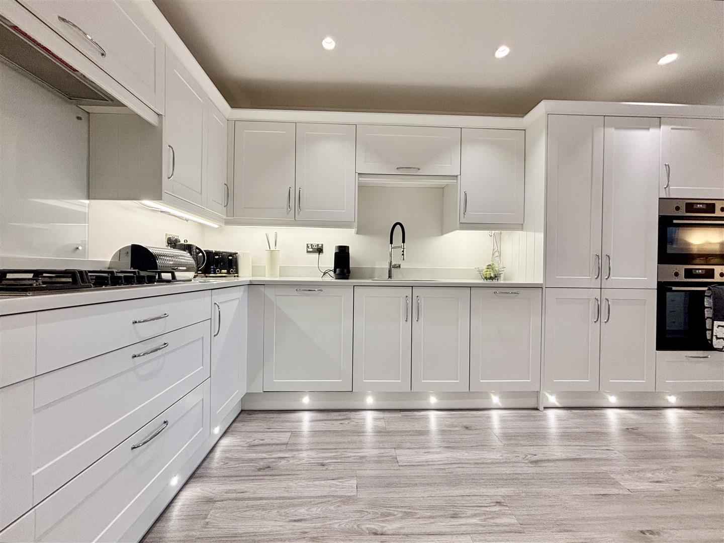 A truly exceptional dining-kitchen! Enjoying a large dining area with wall TV point, central heating radiator and a ground floor WC. The recently fitted kitchen has a fantastic range of quality base and wall cabinets with Quartz work surfaces over and a range of integrated appliances including two electric ovens, five ring gas hob with extractor and a dishwasher. The well fitted kitchen includes pan drawers, larder units, concealed waste bin, inset stainless steel sink with pot-washer tap and an opening to a large utility room.