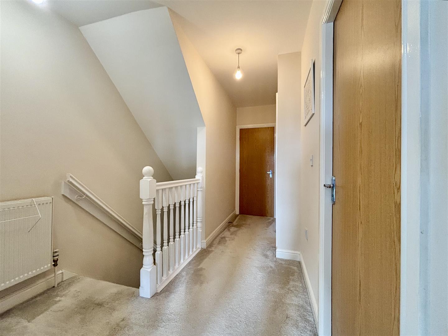 Landing area with access to both reception rooms and a useful storage cupboard.