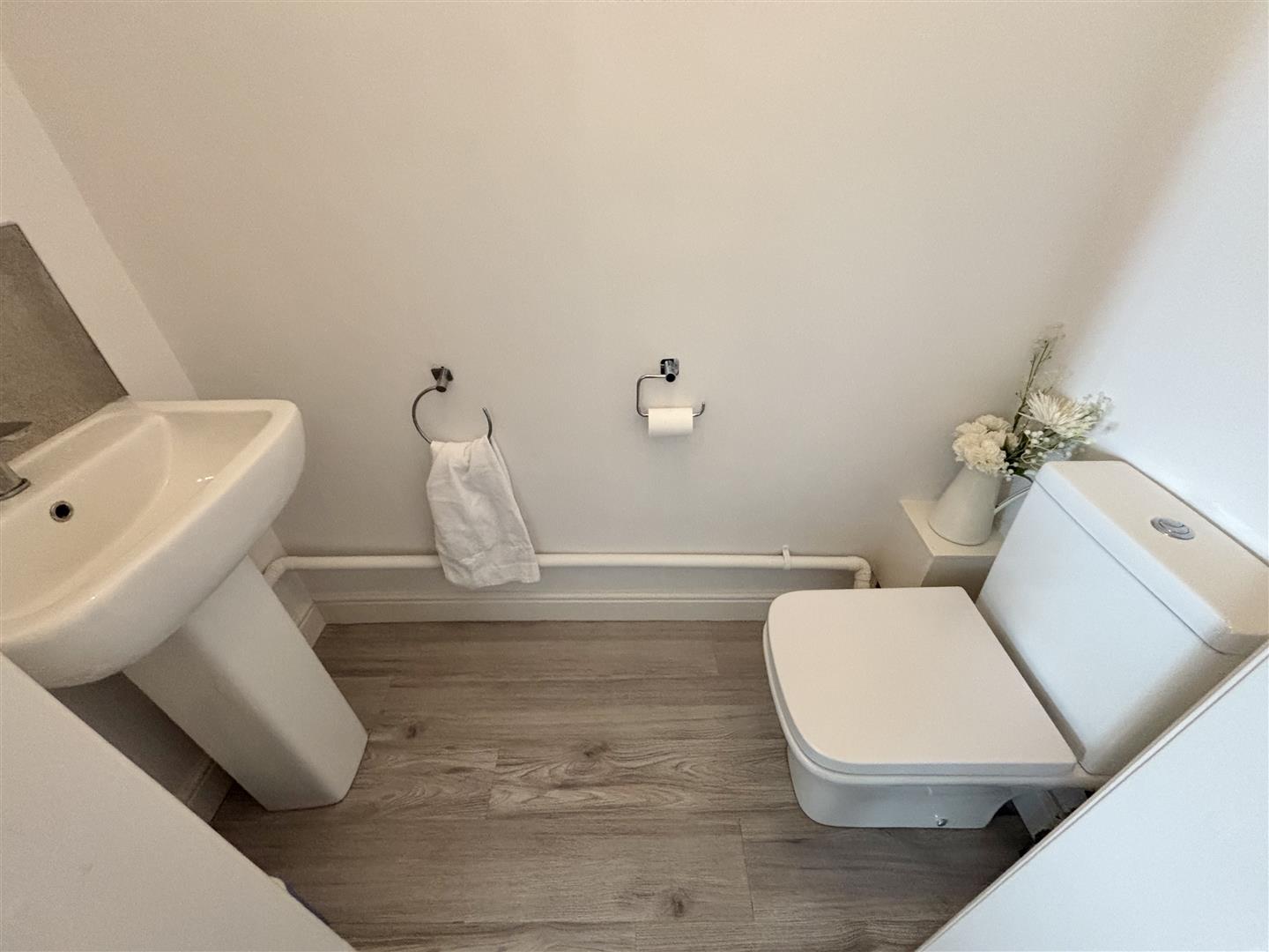 A handy ground floor WC with a pedestal hand wash basin.
