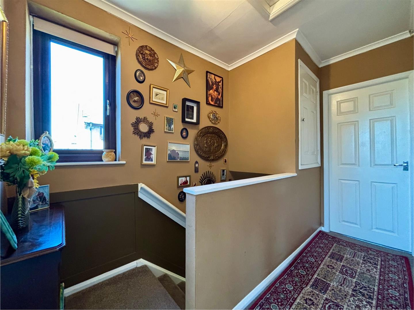 Landing area with access to the loft space, airing cupboard and a window to the side elevation.