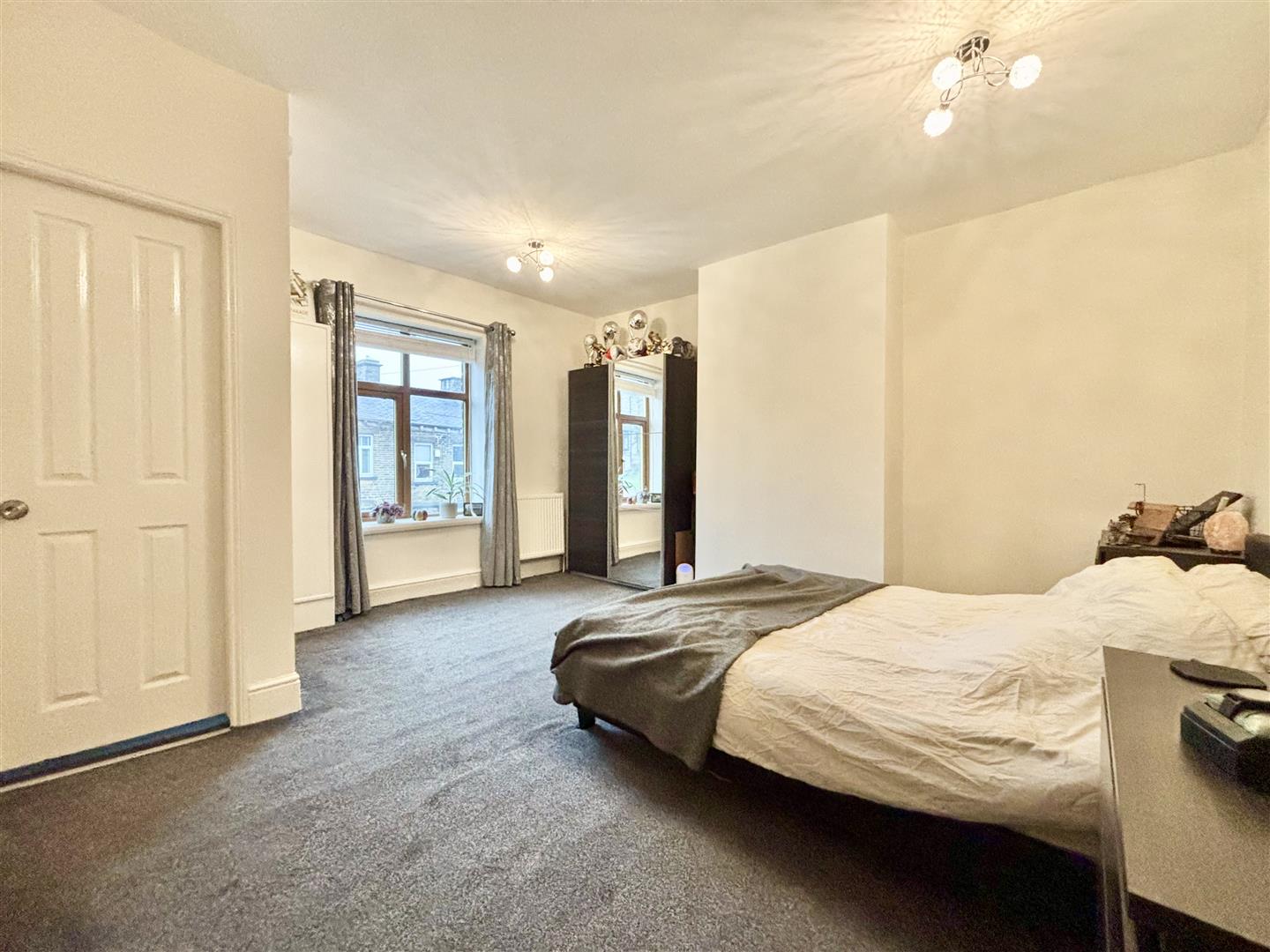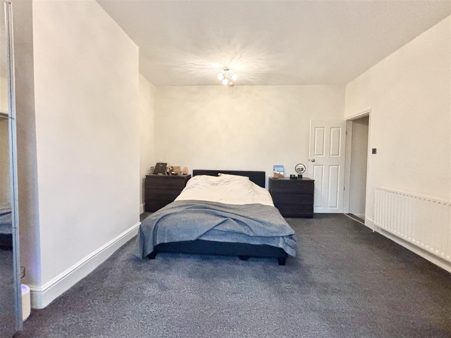 A spacious double bedroom with a window to the front, boiler cupboard and two central heating radiators.