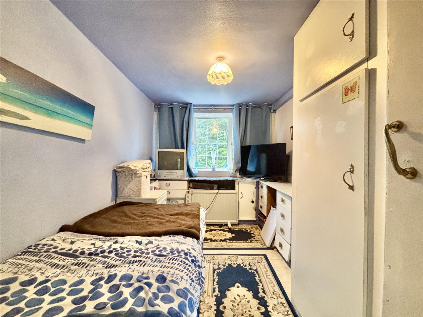 Windows to the front and side elevations, fitted wardrobe and a central heating radiator.