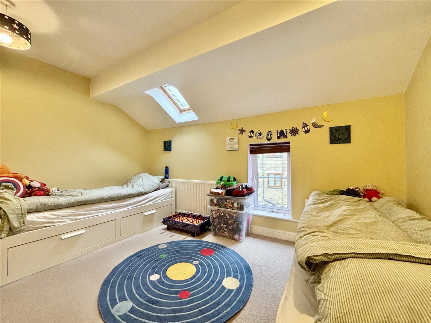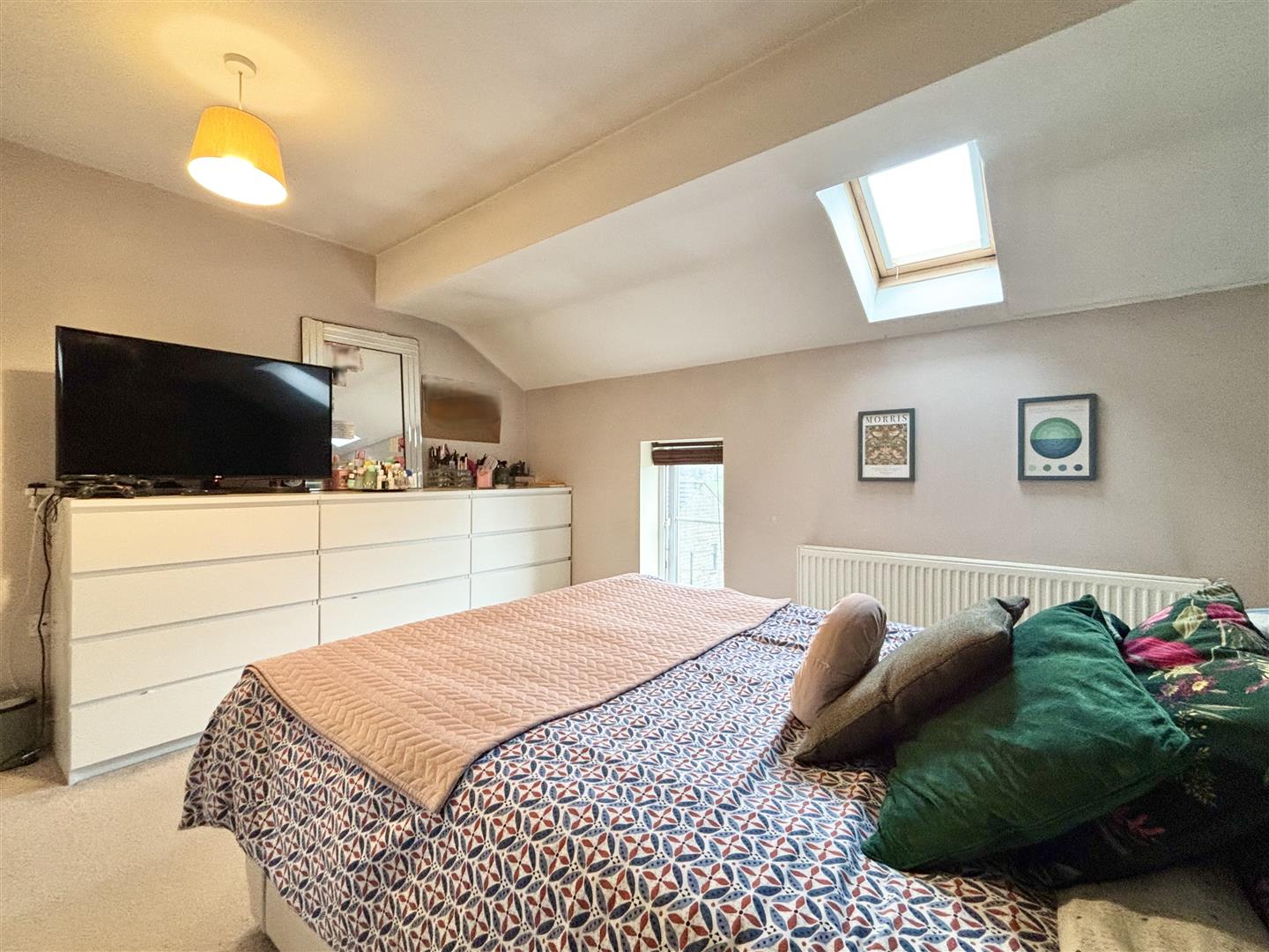 Double bedroom with two Velux roof windows plus a further window to the rear and a central heating radiator.
