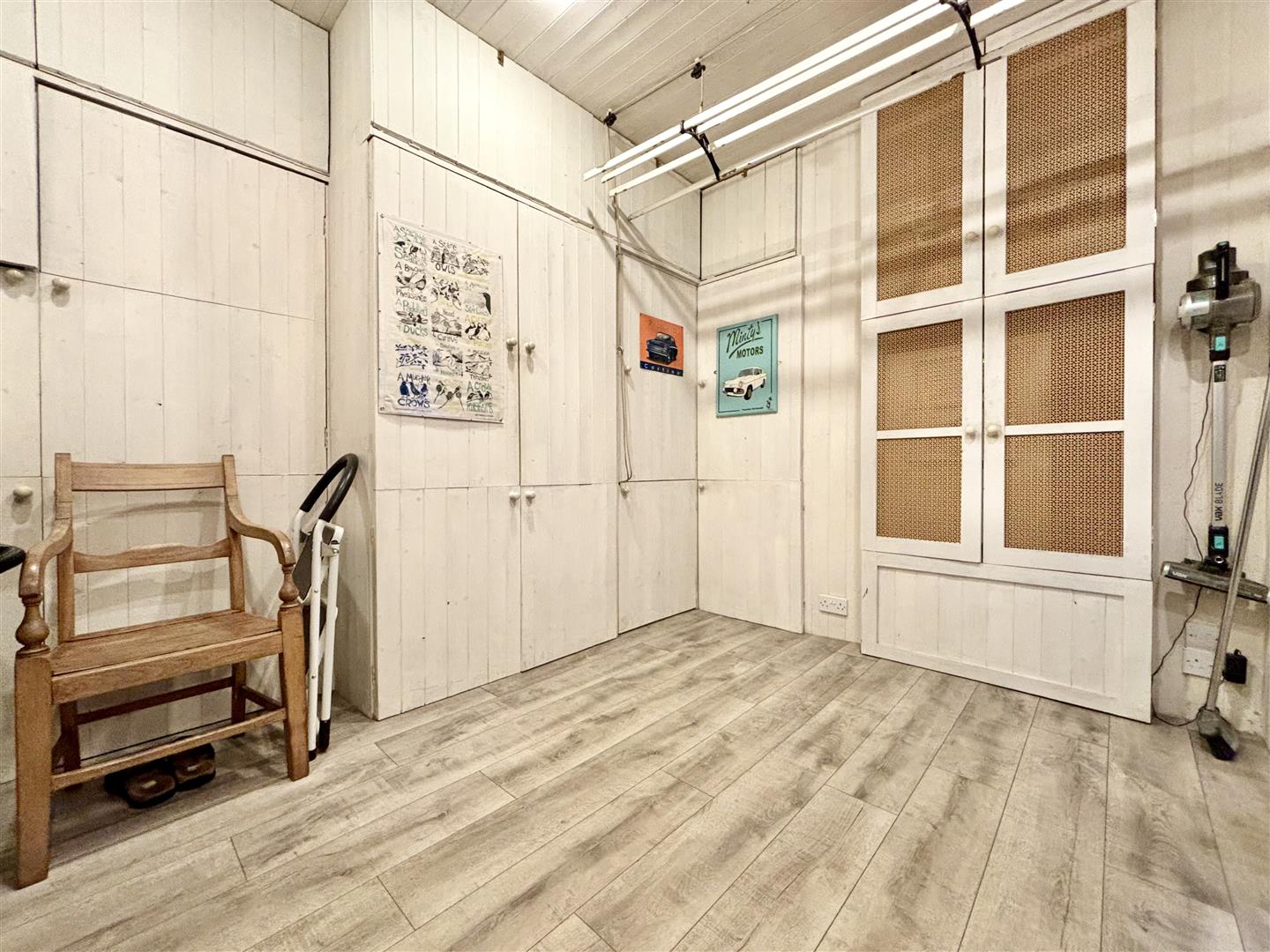 A large utillity and storage space with a window to the rear elevation, fitted shelving & storage, plus plumbing for a washing machine. Again, due to the size of this room it may be suitable for other uses.