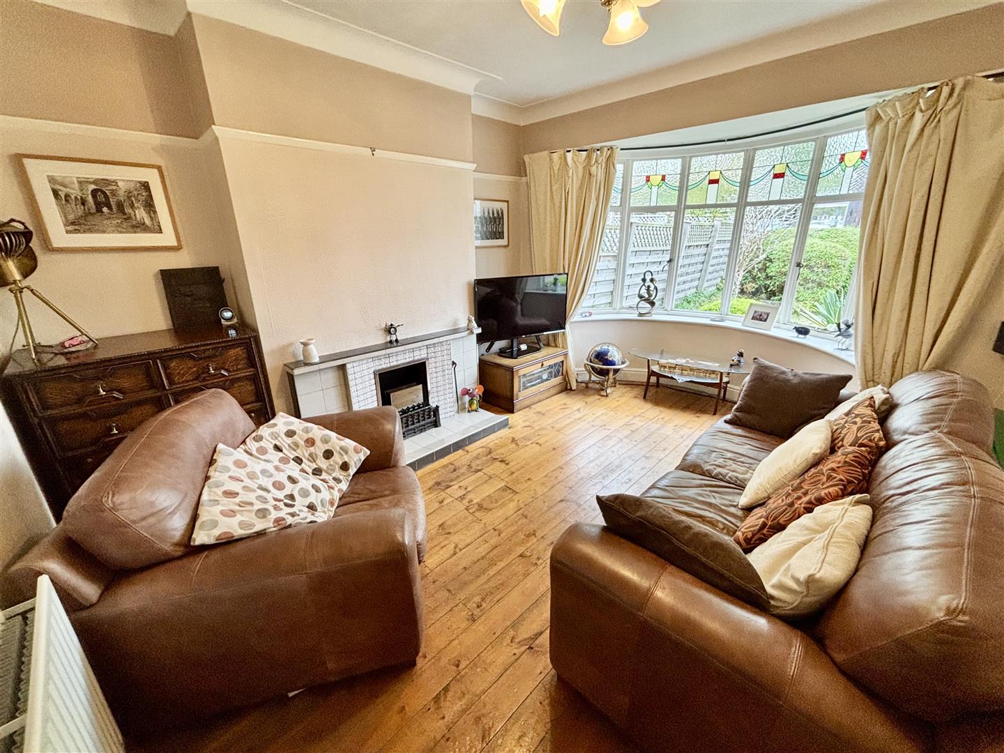 Stripped pine floor, central heating radiator, Bay window to the front elevation and a tiled fireplace with an open fire grate.