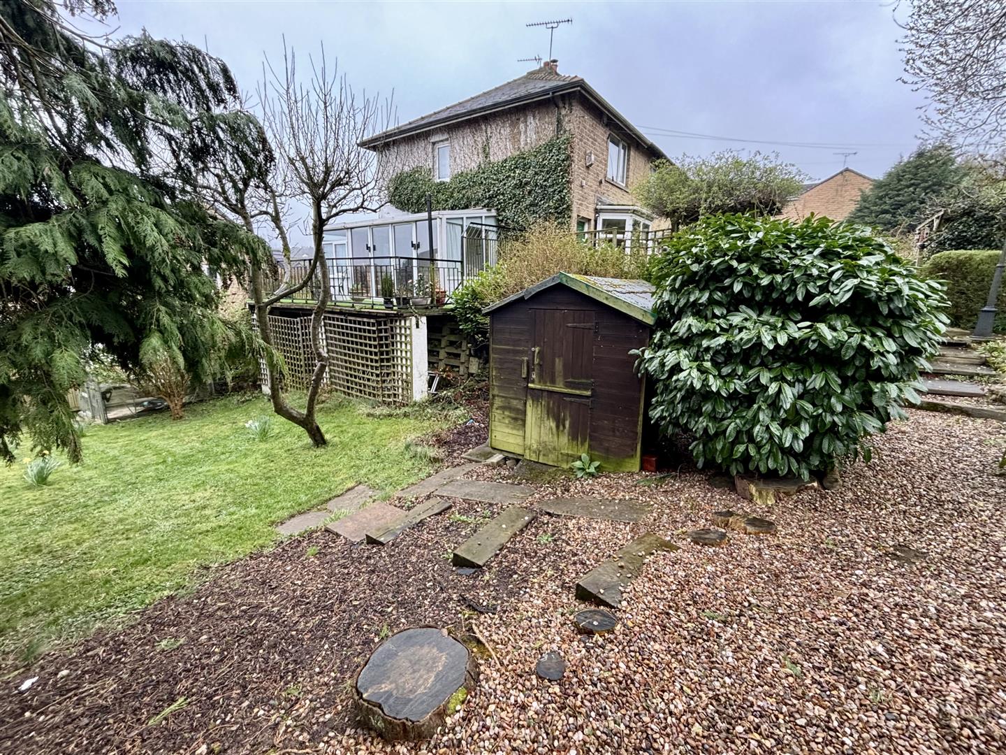 The property enjoys a very large garden to the front and side, consisting of a lawned area, patio seating area. paved pathways, flowerbeds, mature shrubs and trees. Driveway to the front with gravel parking for two cars. Due to the size of the plot and nearby recent development we believe the site may be of interest to builders/investors.