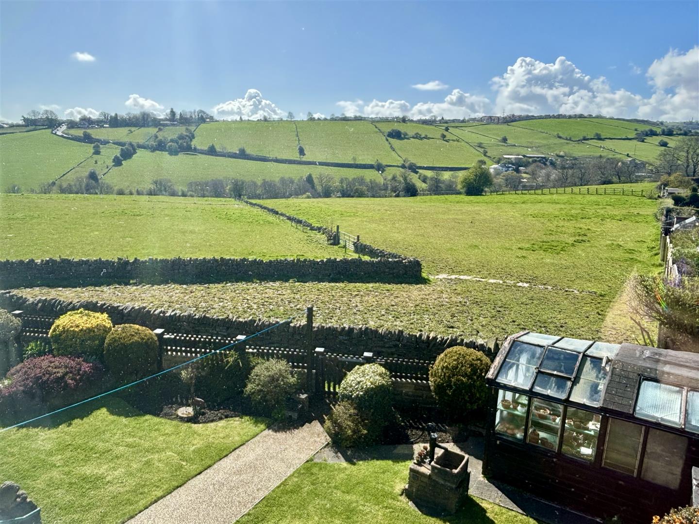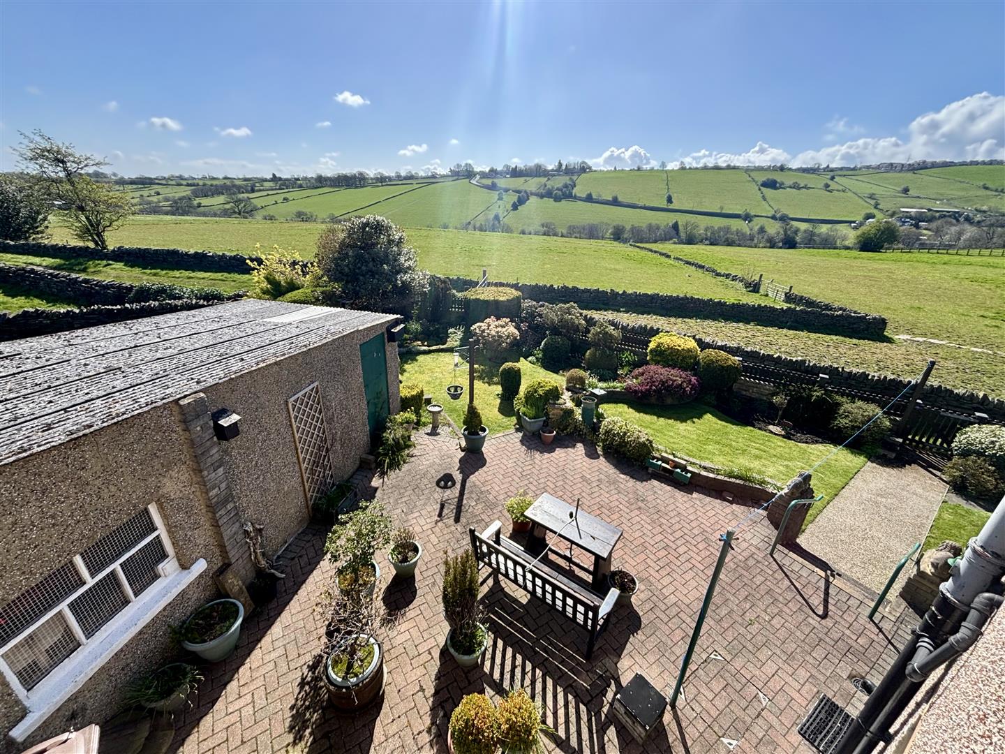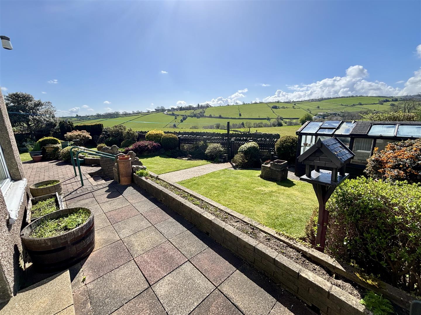 To the front of the property is off-road parking for three cars on a gated, block paved driveway. The block paving leads around the side of the house to form a large patio seating area, hardstanding, or further parking. At the top of the drive is a substantial single garage with power and light. The large rear garden adjoins open fields and enjoys the most stunning views. There are several lawned and patio areas, well-kept flowerbeds, greenhouse and a range of mature shrubs and plants. Stone wall boundary and a garden gate leading to a rear footpath.