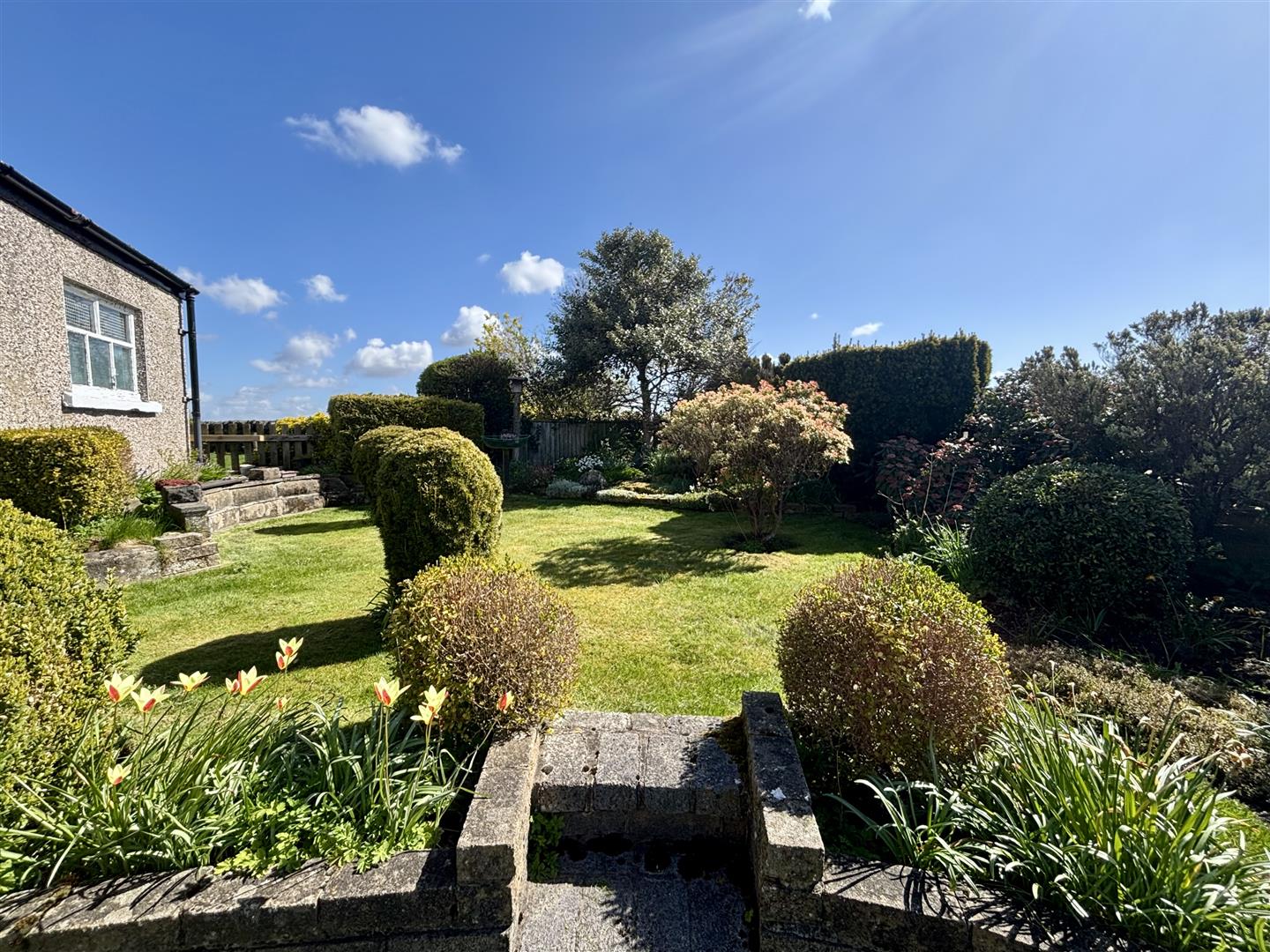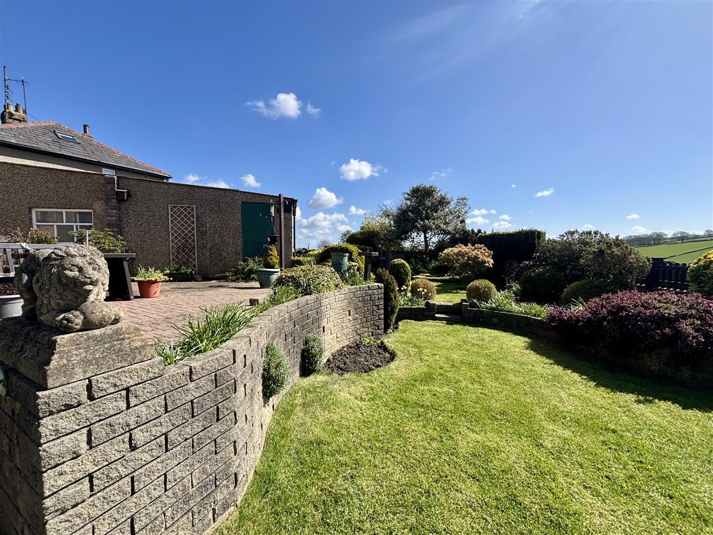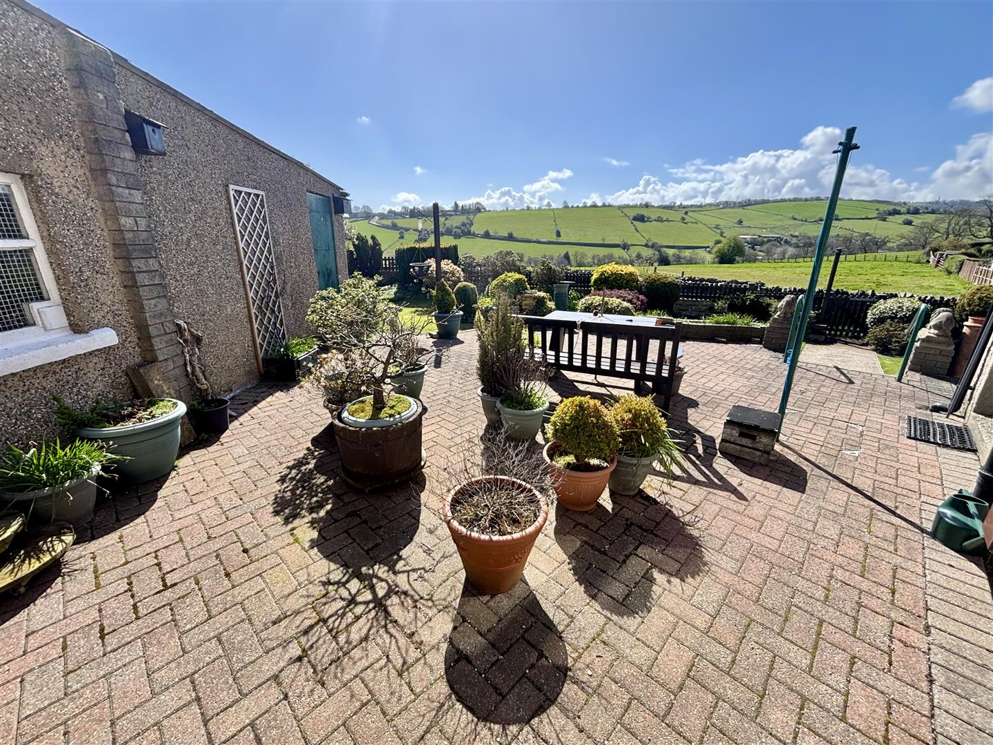 To the front of the property is off-road parking for three cars on a gated, block paved driveway. The block paving leads around the side of the house to form a large patio seating area, hardstanding, or further parking. At the top of the drive is a substantial single garage with power and light. The large rear garden adjoins open fields and enjoys the most stunning views. There are several lawned and patio areas, well-kept flowerbeds, greenhouse and a range of mature shrubs and plants. Stone wall boundary and a garden gate leading to a rear footpath.