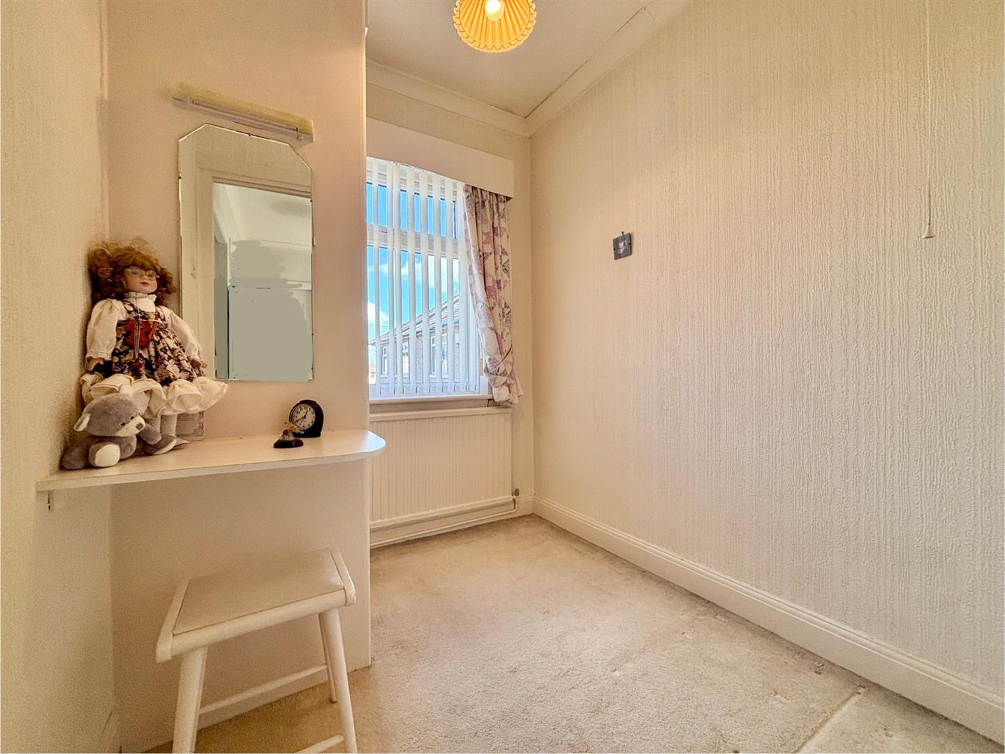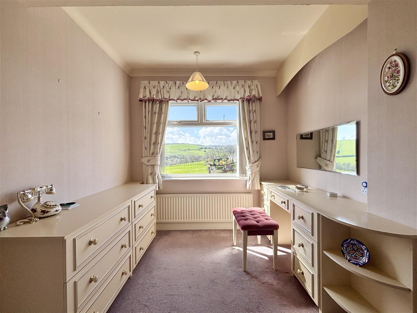 Fitted with a full suite of matching bedroom furniture including three double wardrobes, cupboards, drawers, dressing table and bedside cabinets. Window to the rear elevation making the most of the open views and a central heating radiator.