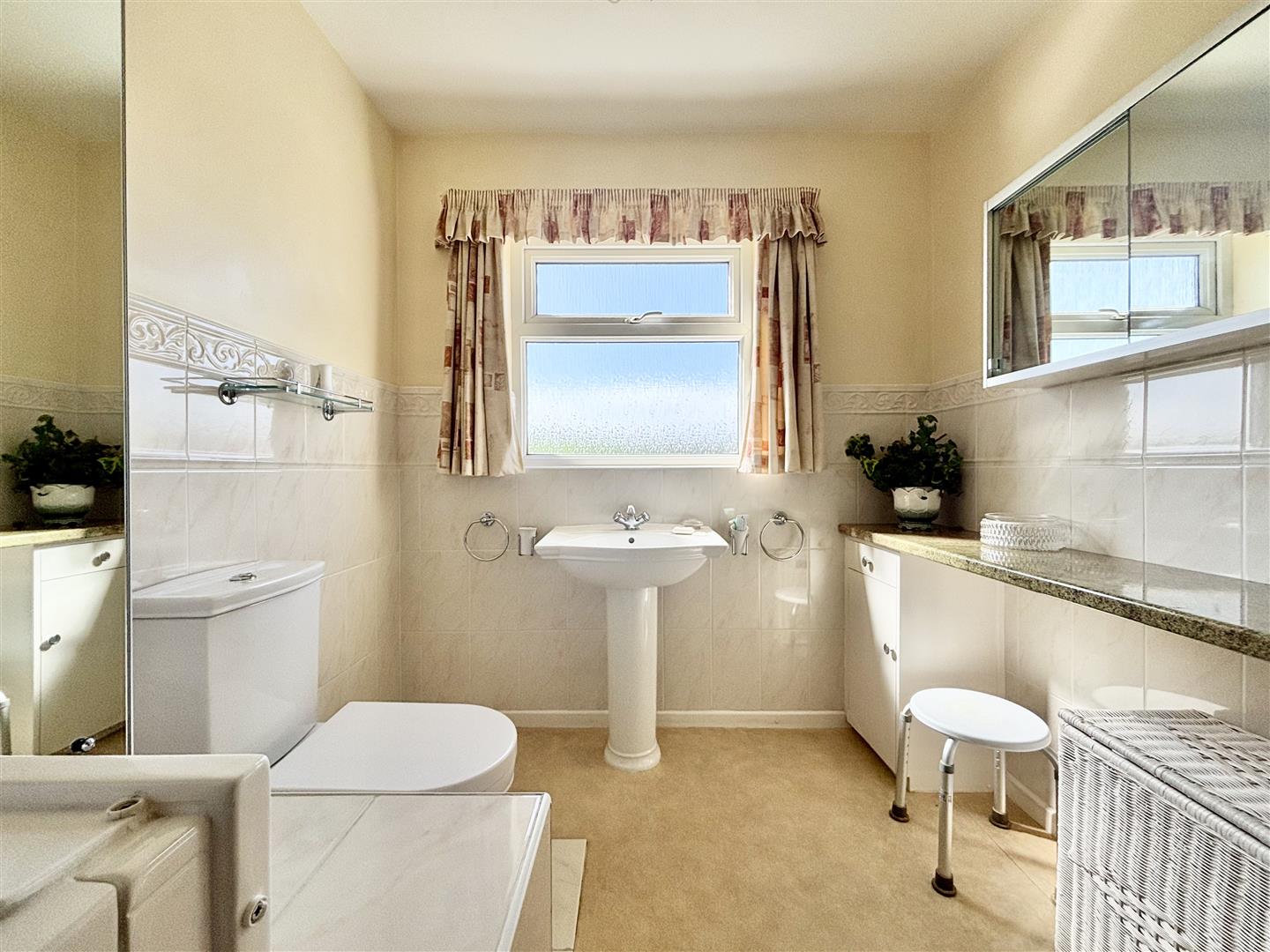 A well proportioned family bathroom comprising of a large walk-in shower enclosure with an electric shower, low flush WC and a pedestal washbasin. Fitted dressing table, central heating radiator and a window to the rear elevation.