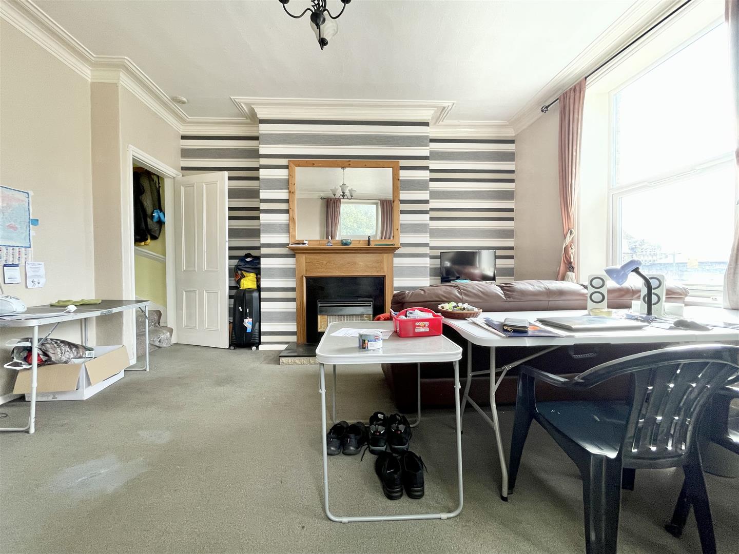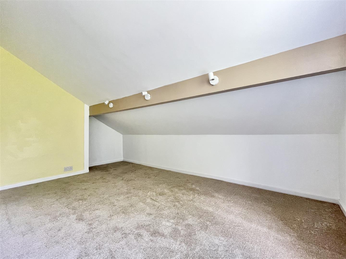 Window to the side elevation, new carpet and three spotlights.
