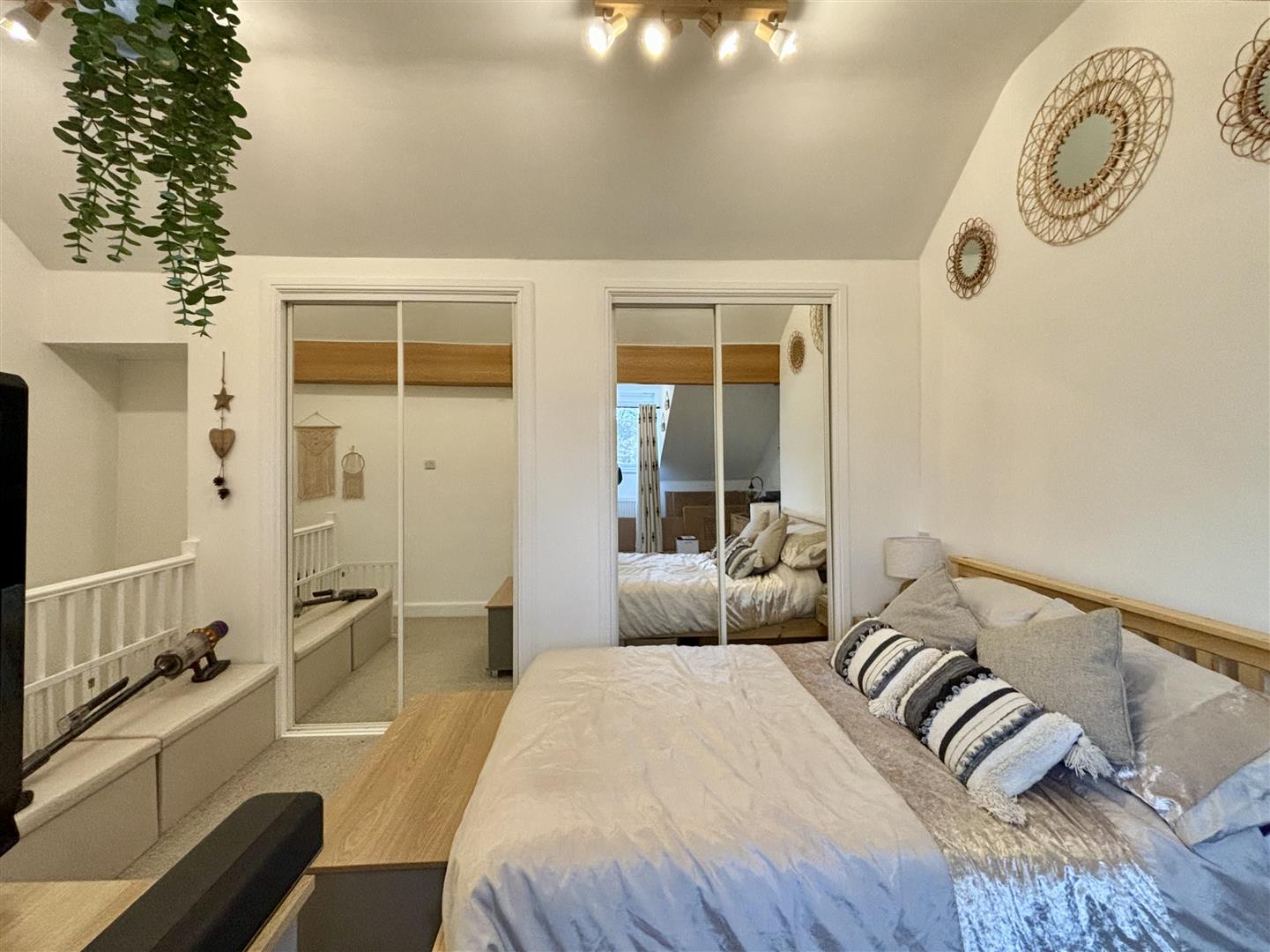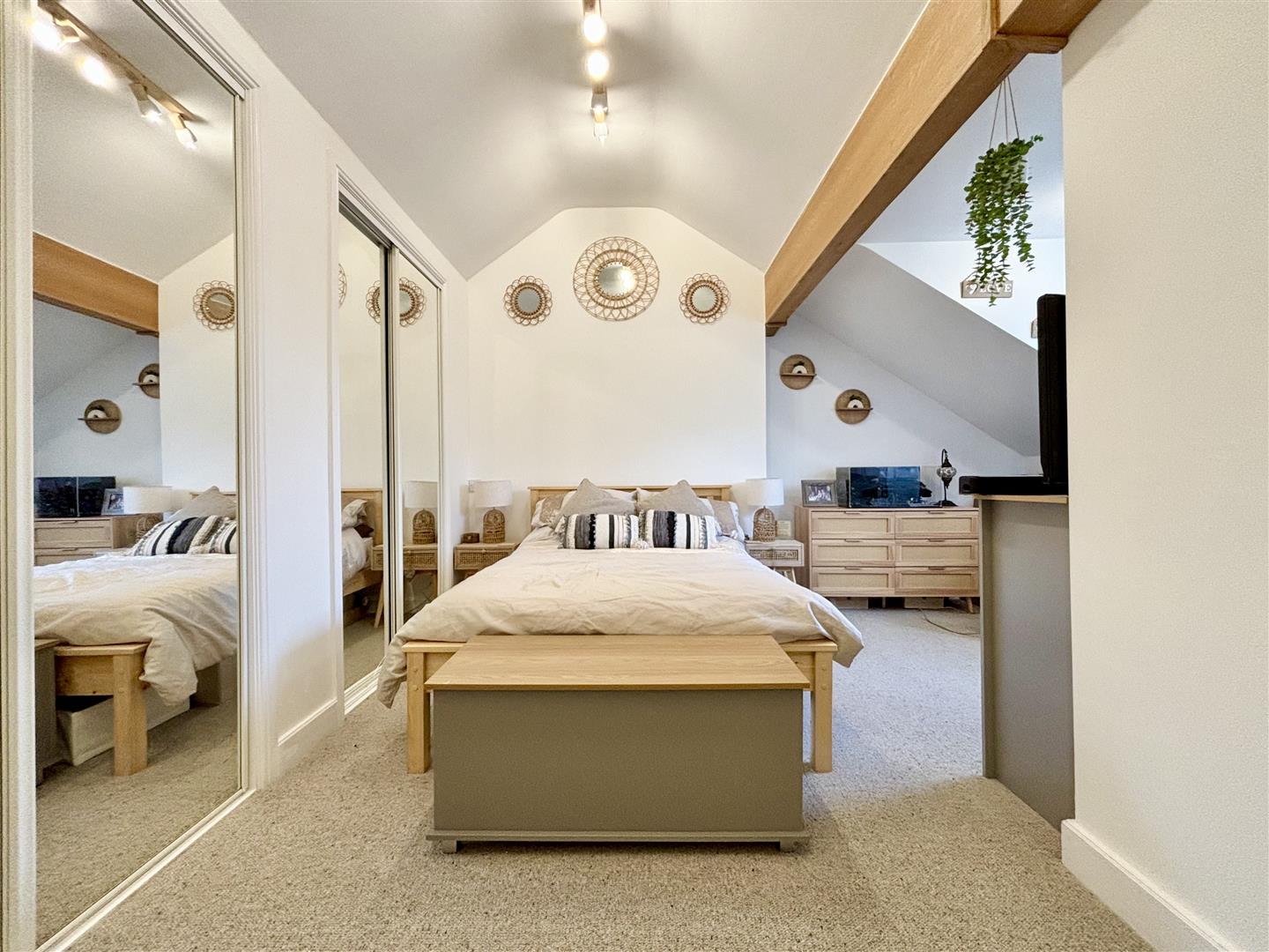 Large fitted wardrobes / storage area with mirror front sliding doors, dormer window to the rear elevation, exposed beams and a central heating radiator. Door to the ensuite.