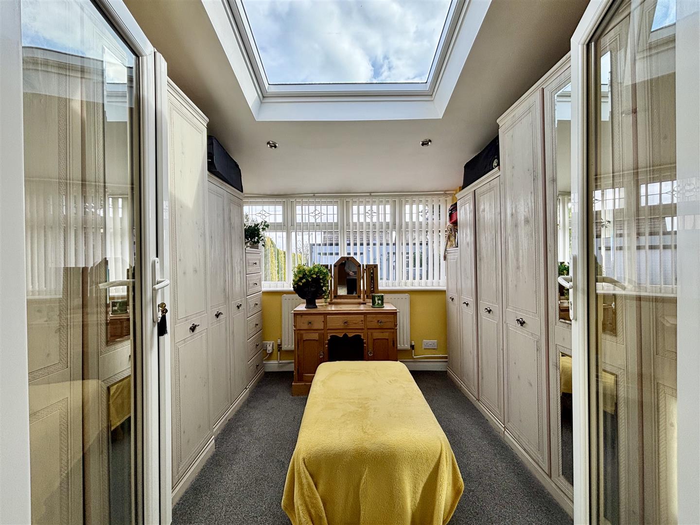Window to the front elevation, Velux roof window and a range of furniture including two x three-door wardrobes, two x double wardrobes, drawers and cupboard.