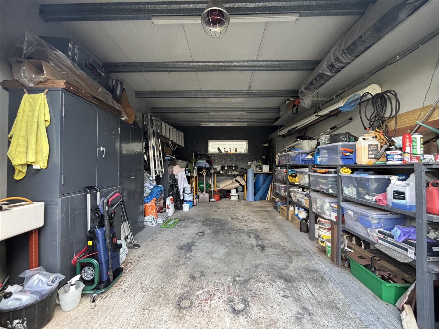 A well proportioned detached garage with a remote control roller door, sink & water supply. Door to: