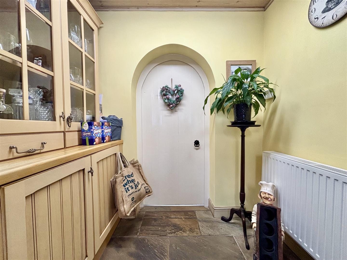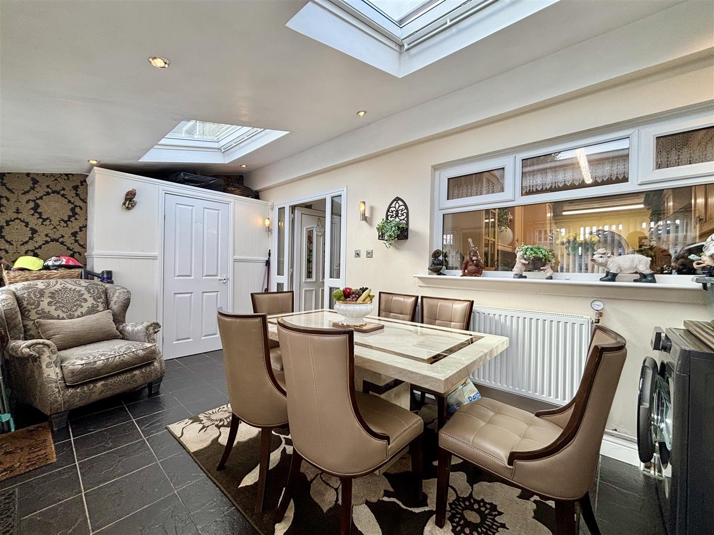 Front entrance door, tiled floor, cloaks cupboard, windows to the front elevation and two Velux roof windows. Utility area with plumbing for a washing machine and space for a dryer, central heating radiator and a door to the lounge.
